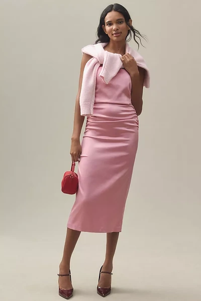 Emery Square-neck Stretch Satin Midi Dress In Pink