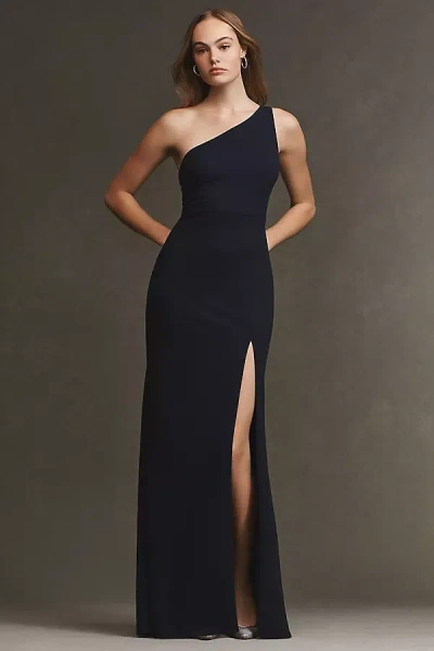 Hallie One-shoulder Stretch Crepe Maxi Gown In Blue