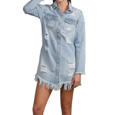 Long Denim Jacket With Big Ripped Point In Washed In Multi