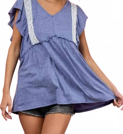 Crochet Lace Detailed Butterfly Tiered Top In Navy In Blue