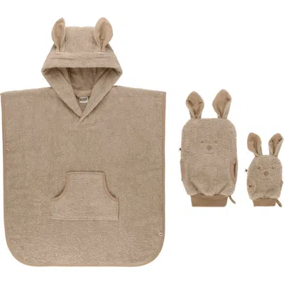 Kids' Kangaroo Hooded Bath Towel & Bath Mitrs Set In Brown