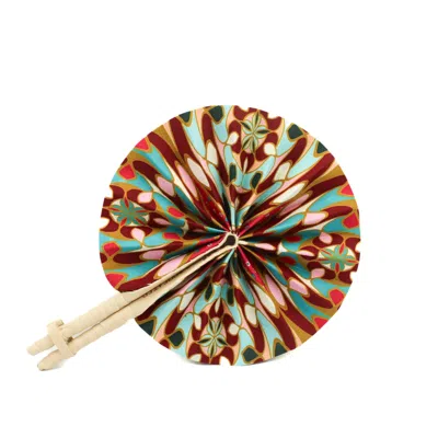 Black / Yellow / Orange Handfan - Modern Kente Print In Black/yellow/orange