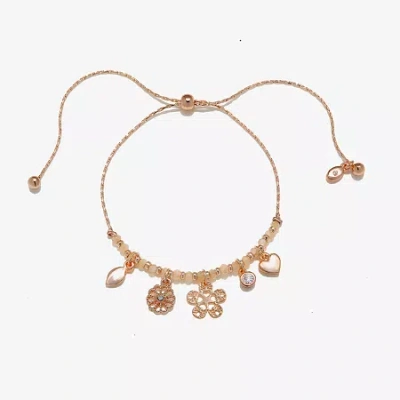 Delicates Rose Tone Womens Flower Charm Bracelet In Gold