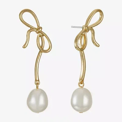 Womens Simulated Pearl Bow Hypoallergenic Drop Earrings In Gold