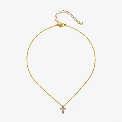 Delicates Gold Tone Womens Glass Cross 16 Inch Pendant Necklace