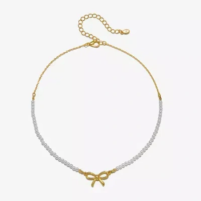 Delicates Gold Tone Womens Simulated Pearl Bow 16 Inch Pendant Necklace
