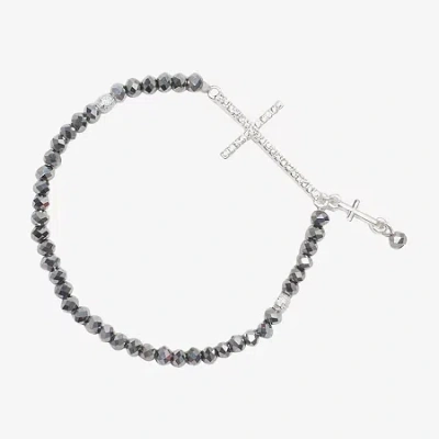 Delicates Silver Tone Womens Glass Cross Stretch Bracelet In Metallic