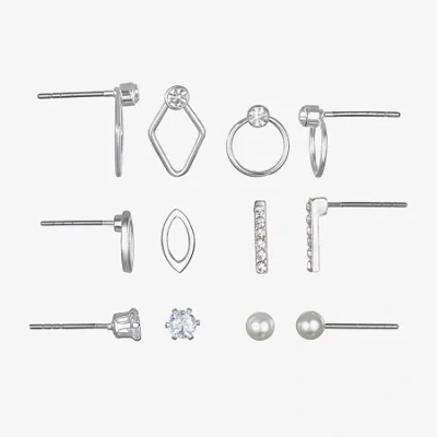 Delicates Womens Glass Round 6 Pair Earring Set In Metallic