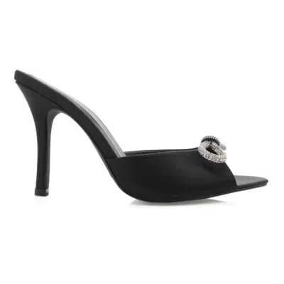 Women's Leilah Bow Heel Slip On Sandal In Black Satin
