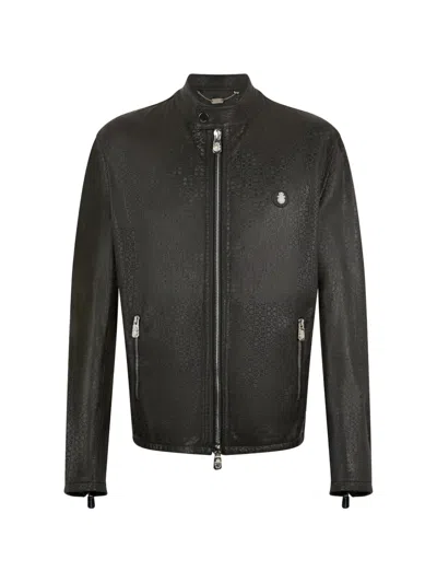 Biker Leather Jacket In Black