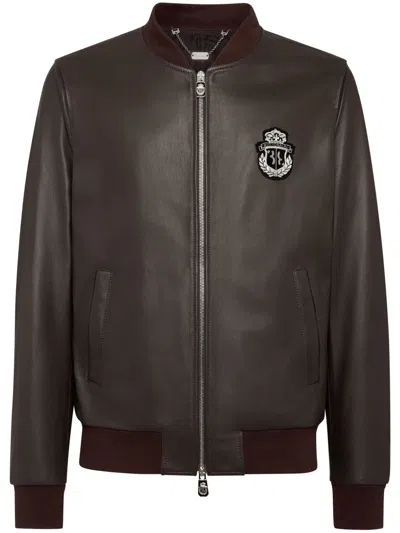 Bomberjacke Aus Leder Mit Logo-patch In Braun