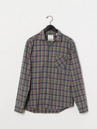 Textural Grid Plaid Tuscumbia Shirt Button Down In Olive/multi