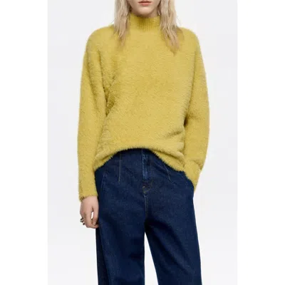 Large Palms Print Leather Carlino Bucket Bag In Yellow