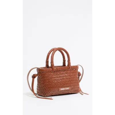 Small Palms Print Leather Carlino Bucket Bag In Brown