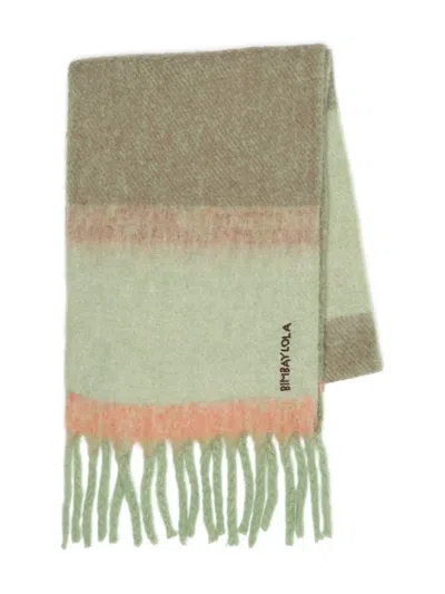 Striped Fringed Scarf In Green