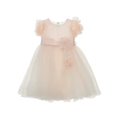 Tulle Dress With Floral Detail And Bow Kids In Pink