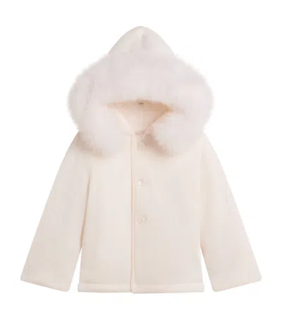 Kids' Fox Fur-trim Coat In White