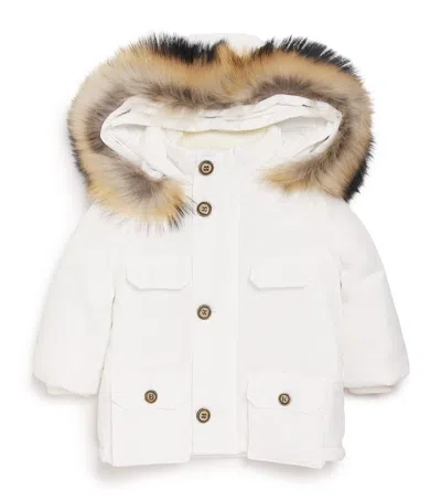 Kids' Fox Fur-trim Padded Coat In White