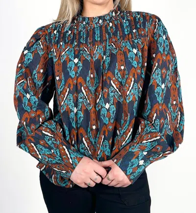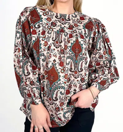 Johanna Paisley Long Sleeve Top In Bordeaux In Blue