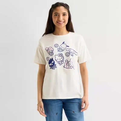 Womens Juniors Crew Neck Short Sleeve Regular Fit Kuromi My Melody Graphic T-shirt In White