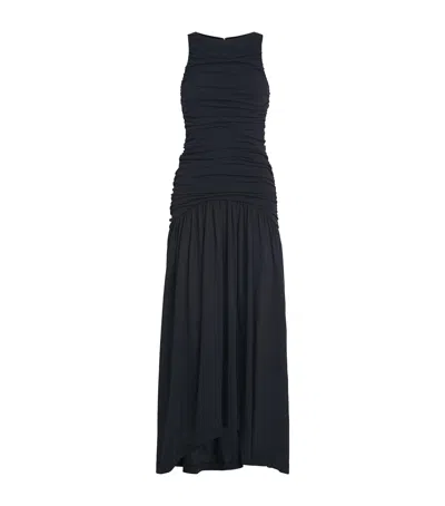 High-neck Ruched Gown In ブラック