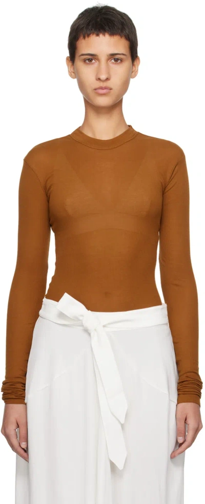 Brown Crewneck Long Sleeve T-shirt In Grate Red 0078