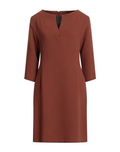 Woman Mini Dress Brown Size 10 Polyester In Multi
