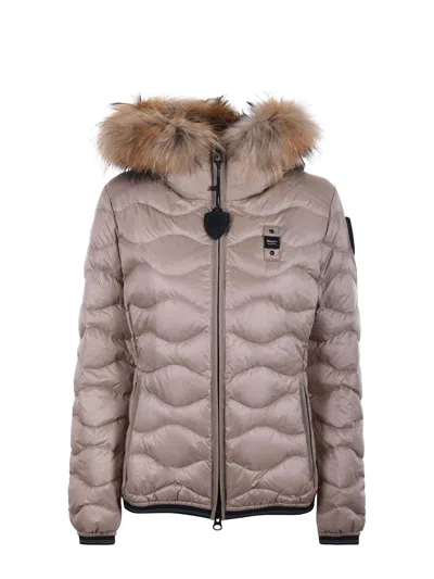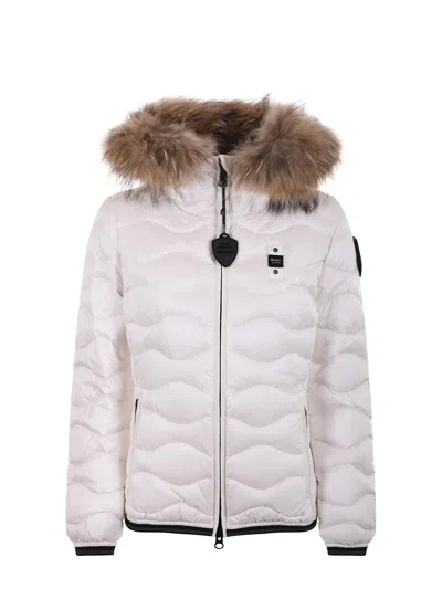 Long Quilted Down Jacket With Removable Raccoon Fur Trim In Black
