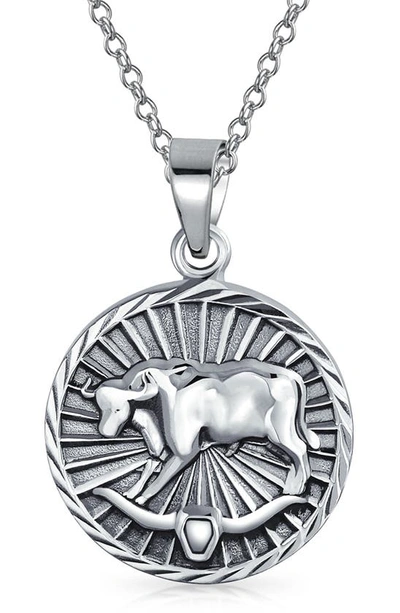 Zodiac Medallion Pendant Necklace In Silver - Taurus
