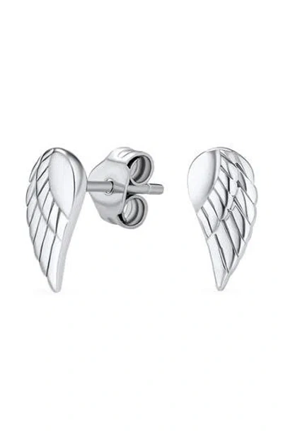 Delicate Guardian Angel Wing Stud Earrings In Metallic