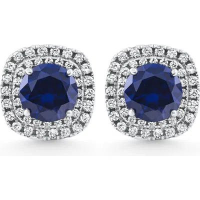 Vs 2.65ct Cushion Halo Blue Sapphire Diamond Studs White Gold Earring Lab Grown In 14k White Gold
