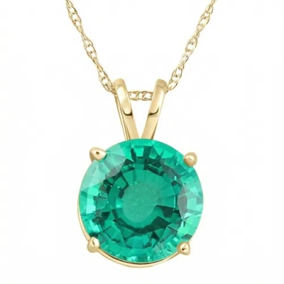 2.70ct Round Green Emerald Solitaire Pendant 14k Gold 18" Necklace Lab Grown 9mm In Silver