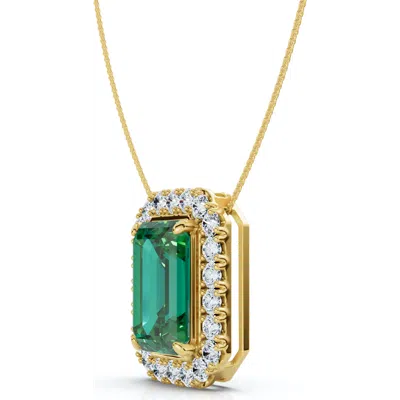7 1/2ct Emerald & Diamond Pendant Gold 3/4" Tall 18" Necklace In Green