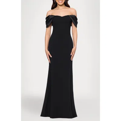 Off The Shoulder Scuba Knit & Crepe Mermaid Gown In Black