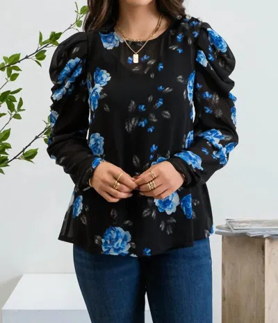 Layer Me Floral Top In Blue In Black