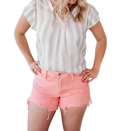 Striped Button Back Top In Off-white