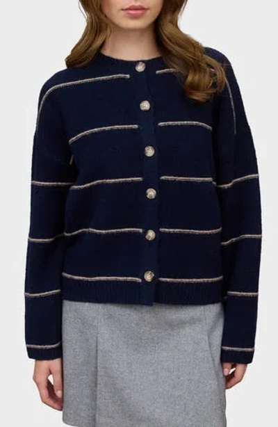 Stripe Crewneck Cardigan In Blue