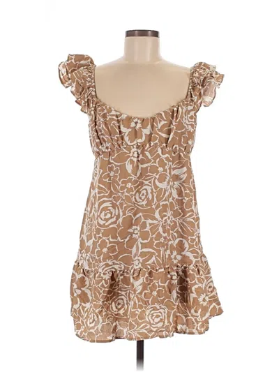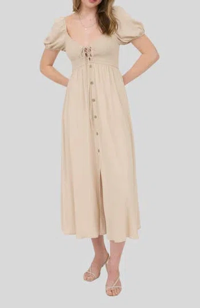 Long Sleeve Tiered Metallic Chiffon Midi Dress In Brown