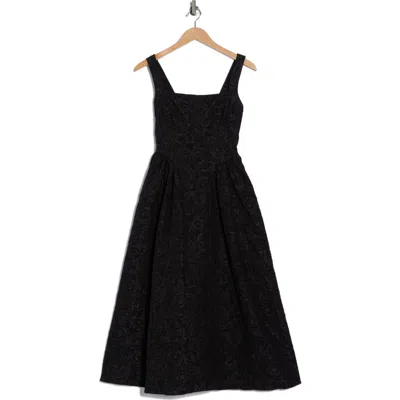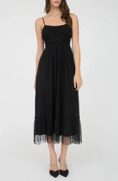 Polka Dot Empire Waist Mesh Midi Dress In Black