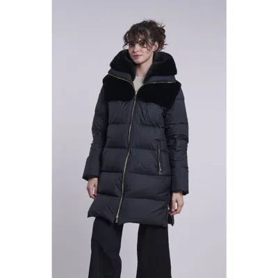 Down And Shearling Coat In Black