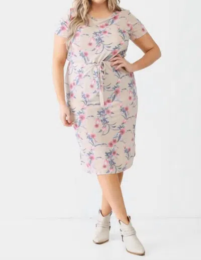 Plus Size Floral Midi Dress In Taupe In Grey