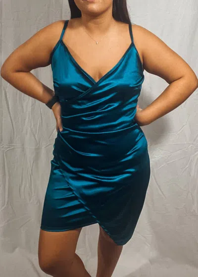 Satin Dress In Turquoise In Blue