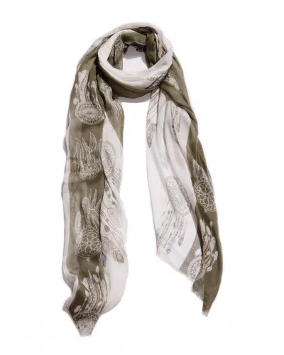 Tissue Cashmere-blend Frida Skulls Scarf In Green