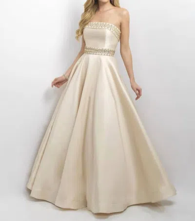 Strapless Gown With Ab Stones In Honeydew In Multi