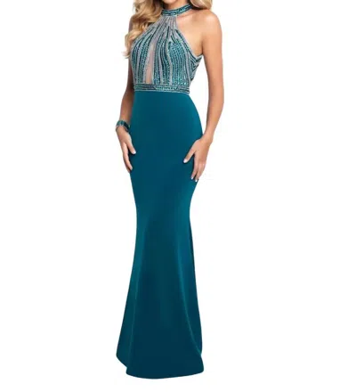 Bejeweled High Halter Sheath Gown In Sapphire In Blue