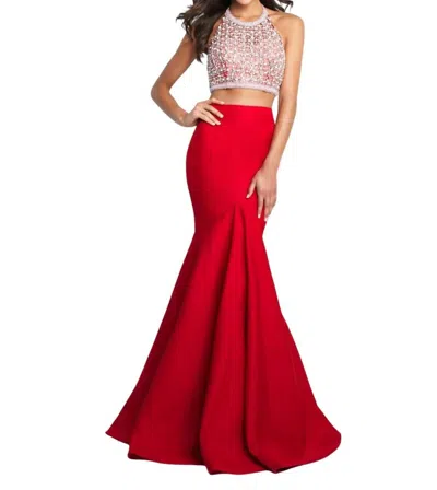 Soft Mikado Beaded Halterneck Two Piece Mermaid Gown In Red