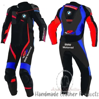 Pre-owned Handmade Motorrad Red Black Racing Motorcycle Leather Suit With Safety Pads