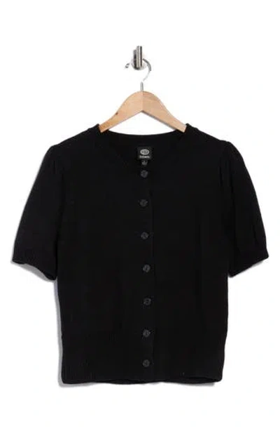 Puff Short Sleeve Button Front Cardigan In Neutral