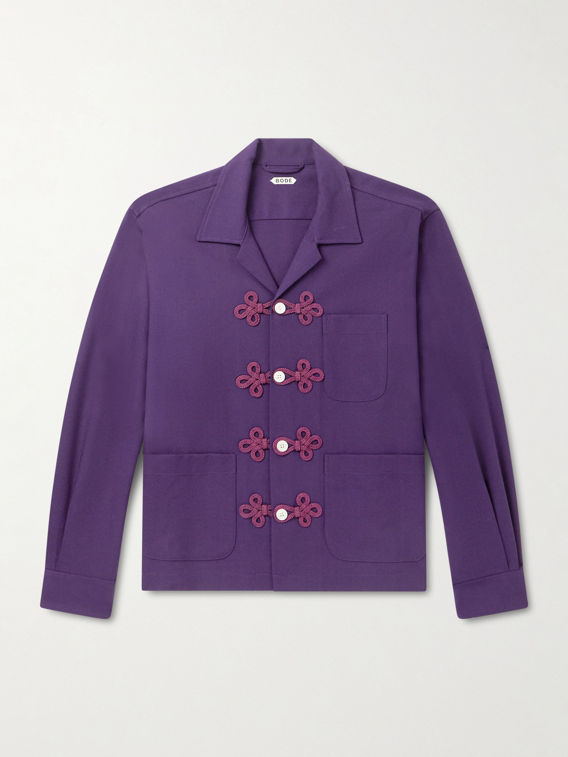 Astor Trillium Camp-collar Embroidered Wool Shirt In Purple