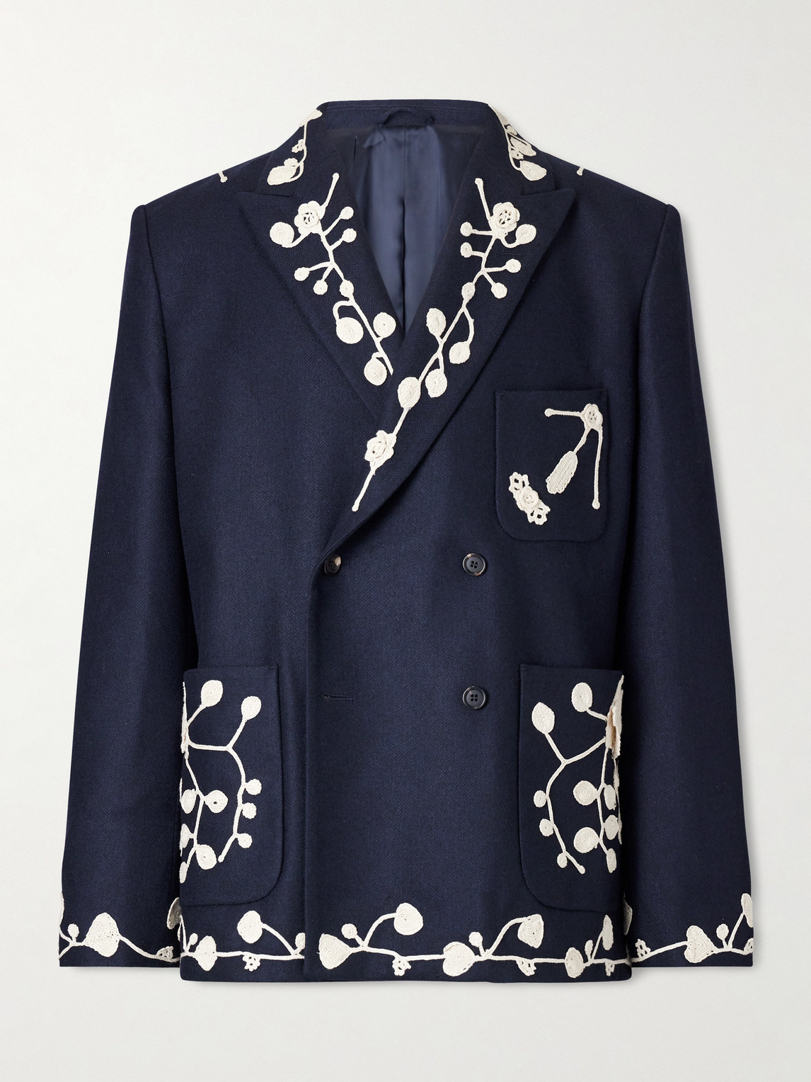 Snowdrop Double-breasted Appliquéd Wool-blend Suit Jacket In Blue